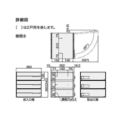 ・郵便物のサイズによって扉を製品設定の全開角度にしないと取り出せない場合があります。設置の際は扉全開時のスペースをご配慮ください。