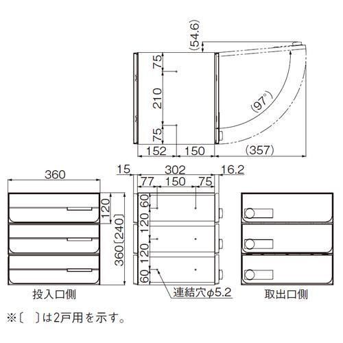 ・郵便物のサイズによって扉を製品設定の全開角度にしないと取り出せない場合があります。設置の際は扉全開時のスペースをご配慮ください。