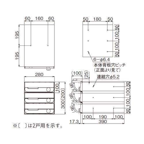 ナスタ 集合ポスト3戸 前入前出(防滴仕様) D-ALL KS-MB5202PU-3L