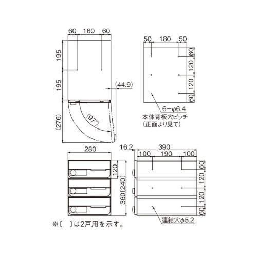・郵便物のサイズによって扉を製品設定の全開角度にしないと取り出せない場合があります。設置の際は扉の全開スペースをご配慮ください。