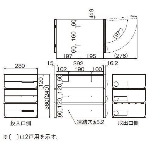 ・郵便物のサイズによって扉を製品設定の全開角度にしないと取り出せない場合があります。設置の際は扉の全開スペースをご配慮ください。